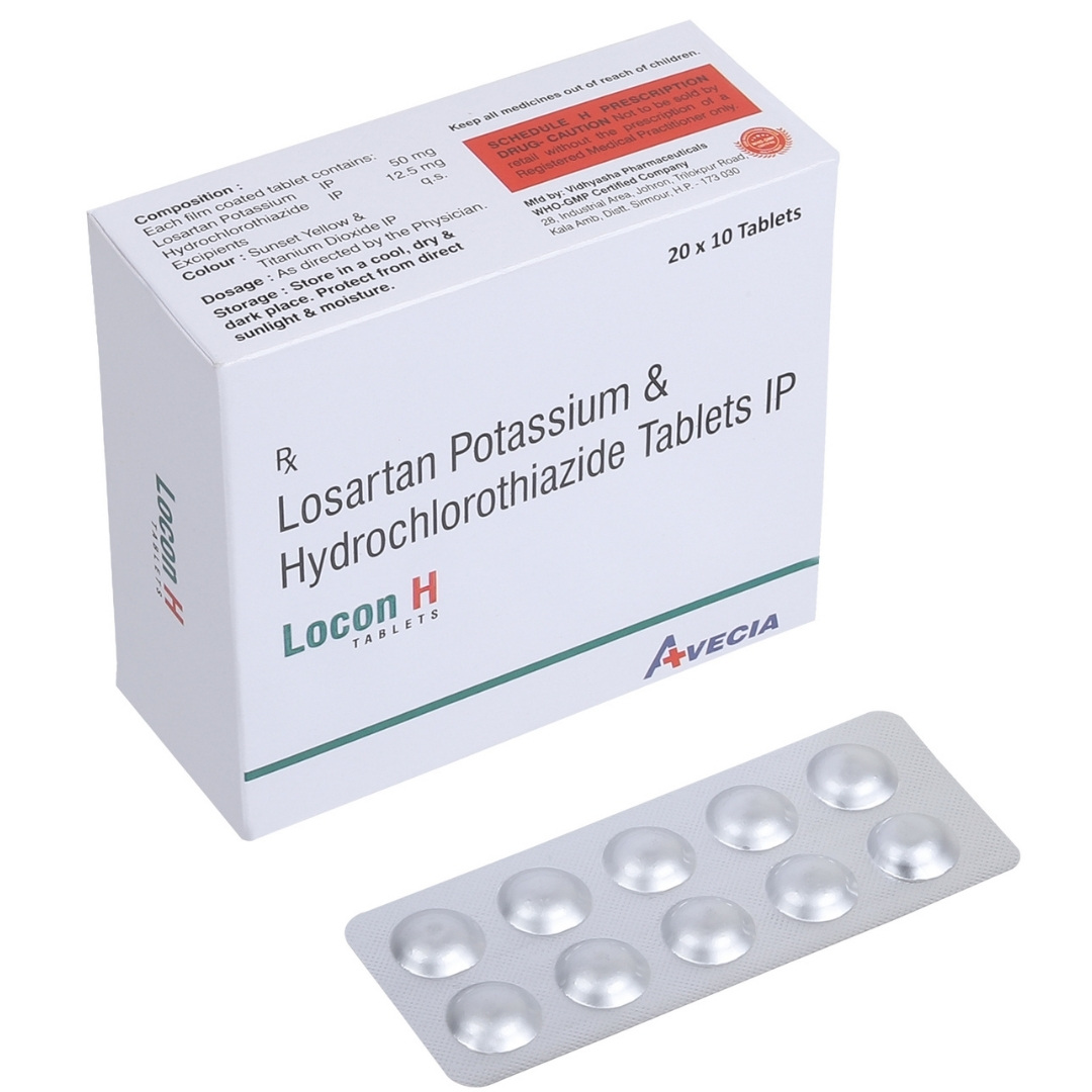 LOCON H is a combination antihypertensive medication containing Losartan 50 mg and Hydrochlorothiazide 12.5 mg. This powerful combination is designed to effectively manage high blood pressure (hypertension) and reduce the risk of heart attack, stroke, and kidney complications.