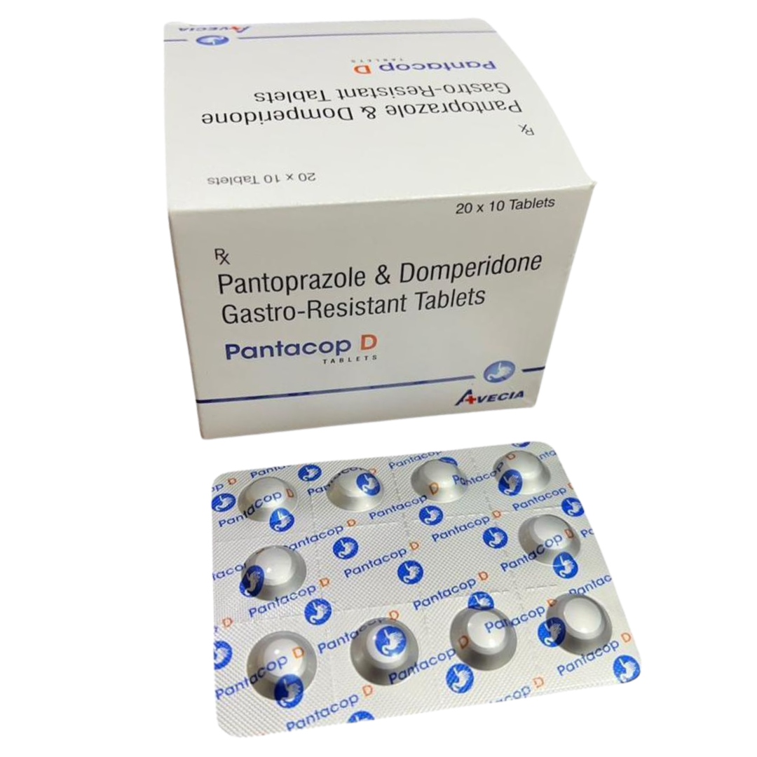 PANTACOP-D is a comprehensive treatment for acid-related gastrointestinal disorders, combining the effectiveness of a proton pump inhibitor (Pantoprazole 40mg) with the benefits of Domperidone 10mg, a powerful prokinetic agent. This dual-action formulation not only reduces excessive gastric acid secretion but also enhances gastric motility, making it highly effective for conditions such as gastroesophageal reflux disease (GERD), erosive esophagitis, dyspepsia, peptic ulcers, and frequent heartburn with delayed gastric emptying.