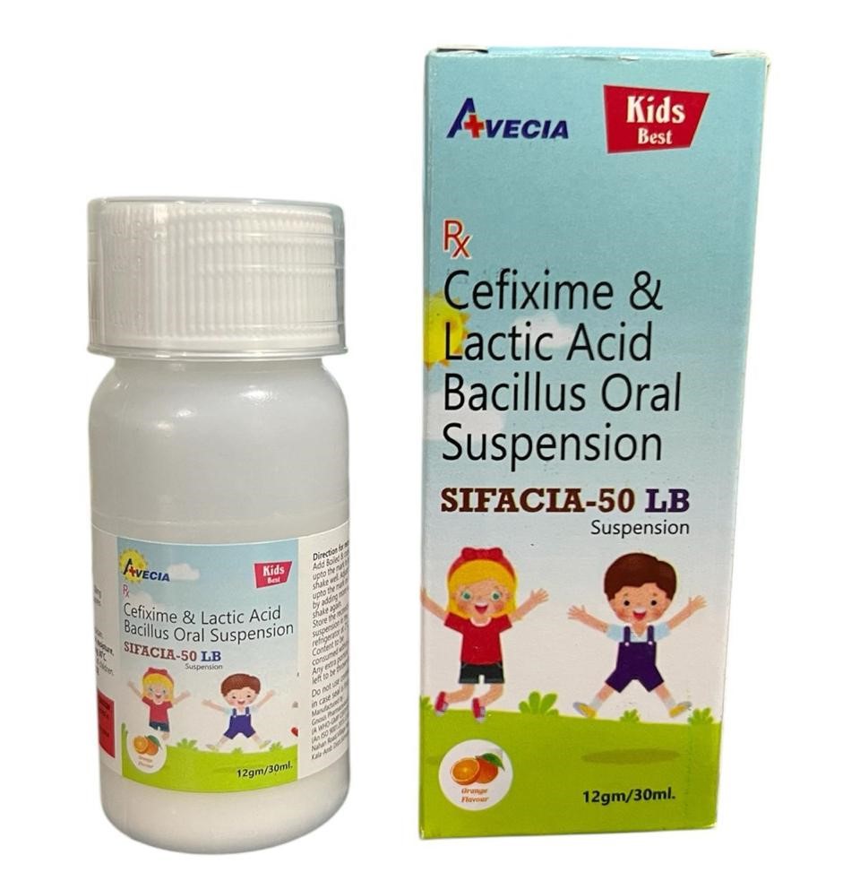 Sifacia 50lb Suspension is a premium-quality oral suspension formulation designed to effectively treat a wide range of bacterial infections while supporting gut health. This pediatric-friendly medicine contains Cefixime 50 mg, a third-generation cephalosporin antibiotic, combined with Lactic Acid Bacillus, a beneficial probiotic that helps restore and maintain healthy intestinal flora during antibiotic therapy. The dual-action formulation makes Sifacia 50lb Suspension a trusted choice among pediatricians and general practitioners for managing infections in children while minimizing gastrointestinal disturbances often associated with antibiotic usage.