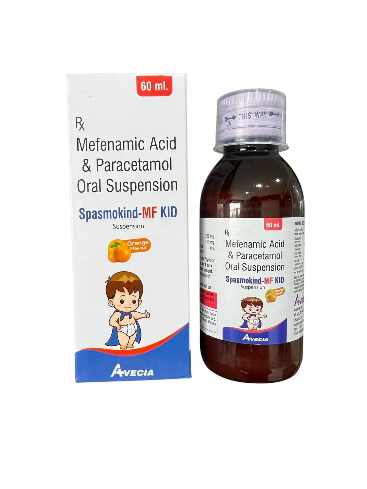 Spasmokind MF Kid Suspension is a specialized pediatric formulation designed to provide effective relief from pain, inflammation, and fever in children. It combines Paracetamol (Acetaminophen) and Mefenamic Acid, two well-established medicines known for their analgesic, antipyretic, and anti-inflammatory properties. This suspension is ideal for pediatric patients who experience discomfort due to various conditions such as fever, toothache, sore throat, post-vaccination pain, headache, ear pain, musculoskeletal pain, and abdominal pain caused by colic or mild gastrointestinal discomfort. Its child-friendly liquid formulation ensures better compliance and ease of administration.